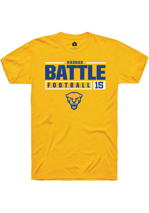 Rashad Battle Gold Pitt Panthers NIL Stacked Box Short Sleeve T Shirt