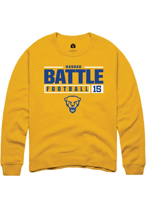 Rashad Battle Rally Mens Gold Pitt Panthers NIL Stacked Box Crew Sweatshirt