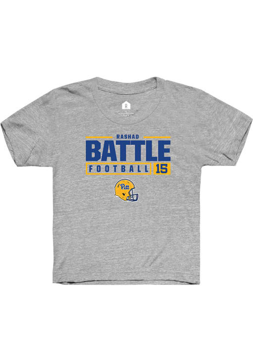 Rashad Battle Rally Youth Grey Pitt Panthers NIL Stacked Box Short Sleeve T-Shirt