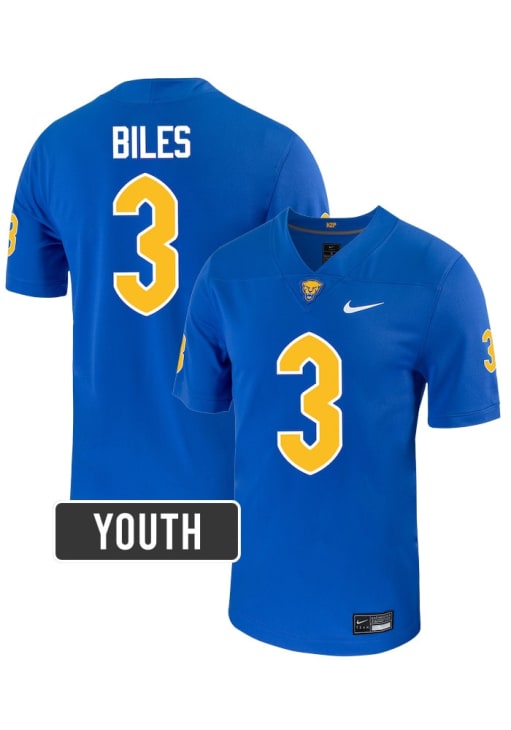 Size Chart for Rasheem Biles Youth Blue Pitt Panthers NIL Name And Number Football Jersey Jersey