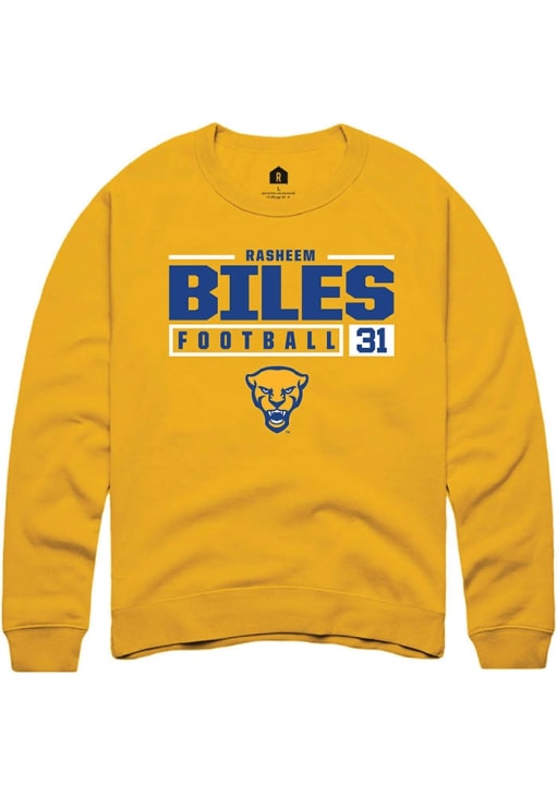 Gear up for the ultimate game day experience with this remarkable Pitt PanthersMens Gold NIL Stacked Box Crew Sweatshirt! Designed with the true fan in mind, this Panthers Long Sleeve Crew Sweatshirt features a custom graphic with player's name and number. Stay warm and comfortable with this Mens Panthers Panthers Crew Sweatshirt.