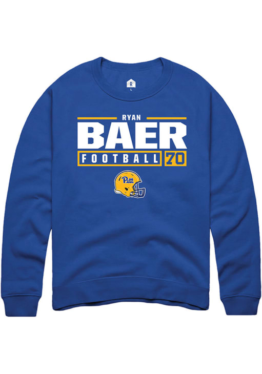 Ryan Baer Rally Mens Blue Pitt Panthers NIL Stacked Box Crew Sweatshirt