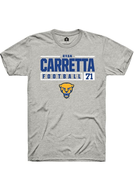 Ryan Carretta Ash Pitt Panthers NIL Stacked Box Short Sleeve T Shirt