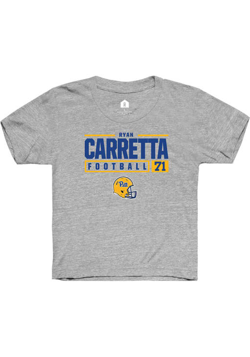 Ryan Carretta Rally Youth Grey Pitt Panthers NIL Stacked Box Short Sleeve T-Shirt