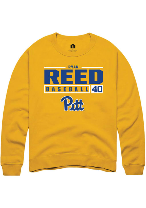 Ryan Reed Rally Mens Gold Pitt Panthers NIL Stacked Box Crew Sweatshirt
