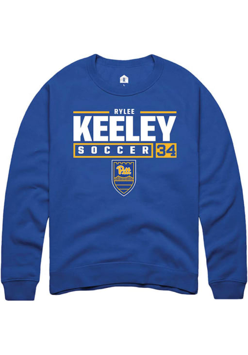 Rylee Keeley Rally Mens Blue Pitt Panthers NIL Stacked Box Crew Sweatshirt