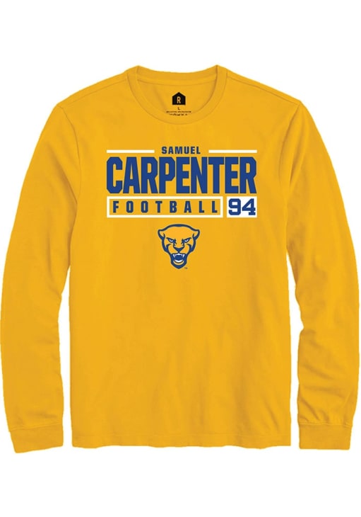Show your Pitt Panthers spirit in this Panthers Gold T Shirt! This Panthers NIL Stacked Box Long Sleeve T Shirt makes a great layer for cooler nights cheering on the Panthers. Featuring a custom graphic with player's name and number, this Pitt Panthers Long Sleeve Tee is an essential addition for every fan. Go Panthers!