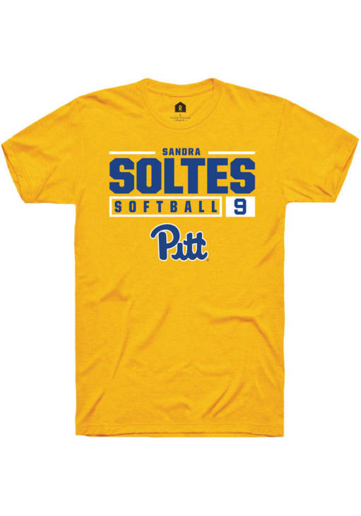 Sandra Soltes Gold Pitt Panthers NIL Stacked Box Short Sleeve T Shirt