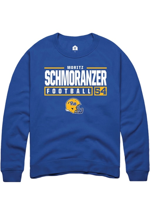 Moritz Schmoranzer Rally Mens Blue Pitt Panthers NIL Stacked Box Crew Sweatshirt