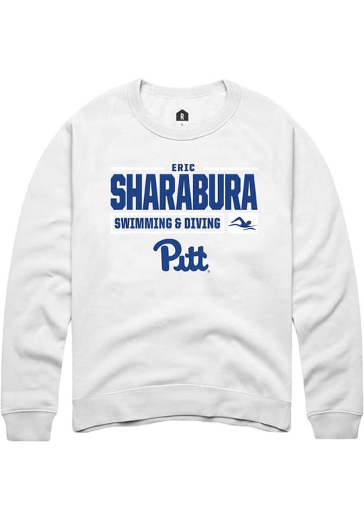 Eric Sharabura Rally Mens White Pitt Panthers NIL Stacked Box Crew Sweatshirt