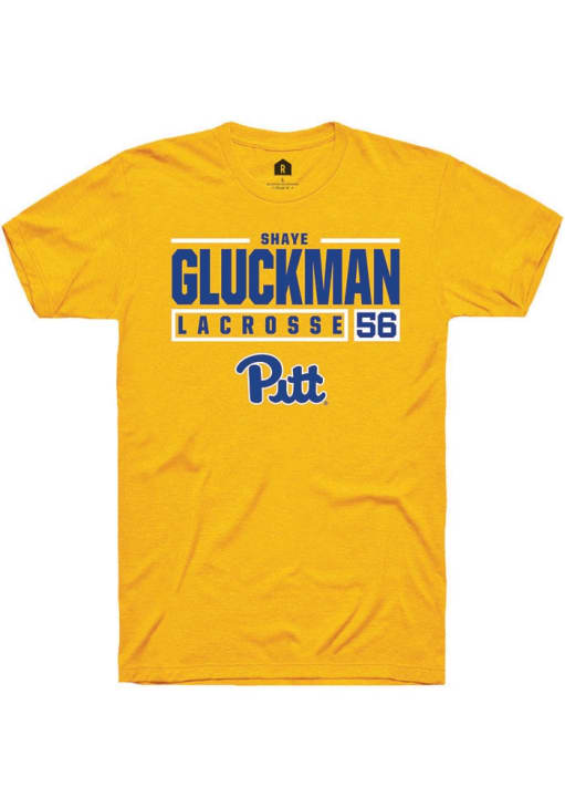 Shaye Gluckman Gold Pitt Panthers NIL Stacked Box Short Sleeve T Shirt