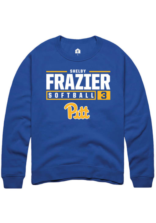 Shelby Frazier Rally Mens Blue Pitt Panthers NIL Stacked Box Crew Sweatshirt