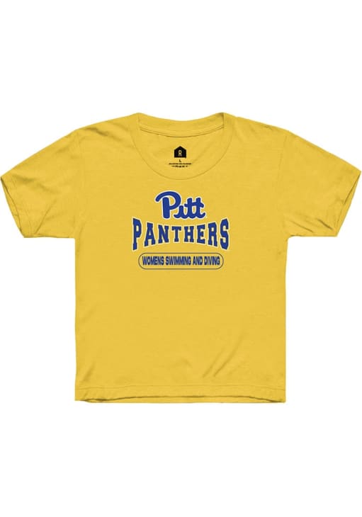 Product Details Product Details Tagless neck labelTaped neck and shoulders for durabilityModern classic fitClassic width, rib collarMade with OEKO-TEX certified low-impact dyesClassic Fit100% Ringspun CottonHits At Hip Officially Licensed Your future Pitt Panthers will be gameday ready in this YellowYouth Short Sleeve Tee. This Womens Swimming and Diving T-Shirt features a digitally printed graphic.