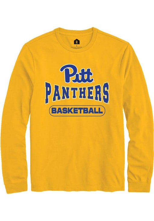 Show your Pitt Panthers spirit in this Panthers Gold T Shirt! This Panthers Basketball Long Sleeve T Shirt makes a great layer for cooler nights cheering on the Panthers. Featuring a digitally printed graphic, this Pitt Panthers Long Sleeve Tee is an essential addition for every fan. Go Panthers!