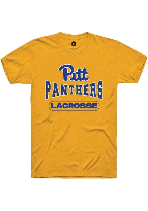 Display your team spirit with this remarkable Pitt Panthers Gold Lacrosse Short Sleeve T Shirt! The Panthers Short Sleeve Tee showcases a digitally printed graphic that truly sets it apart. Stand out from the crowd and proudly declare your allegiance to the Panthers with this exceptional Gold Panthers T Shirt. Go Panthers!