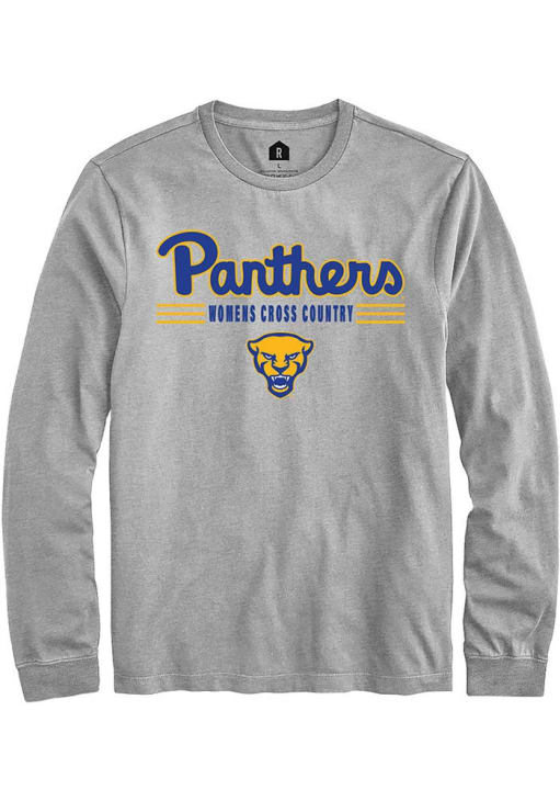 Show your Pitt Panthers spirit in this Panthers Grey T Shirt! This Panthers Womens Cross Country Long Sleeve T Shirt makes a great layer for cooler nights cheering on the Panthers. Featuring a digitally printed graphic, this Pitt Panthers Long Sleeve Tee is an essential addition for every fan. Go Panthers!