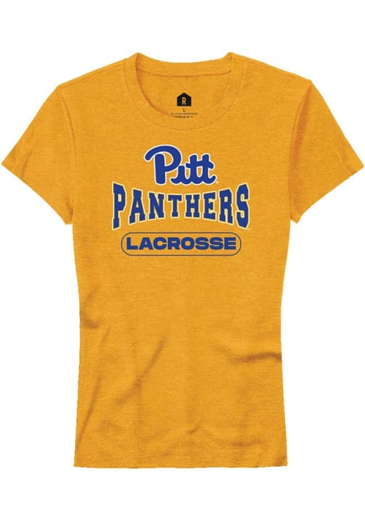Display your team spirit with this remarkable Pitt Panthers Gold Lacrosse Short Sleeve T-Shirt! The Panthers Short Sleeve Tee showcases a digitally printed graphic that truly sets it apart. Stand out from the crowd and proudly declare your allegiance to the Panthers with this exceptional Gold Panthers T-Shirt. Go Panthers!