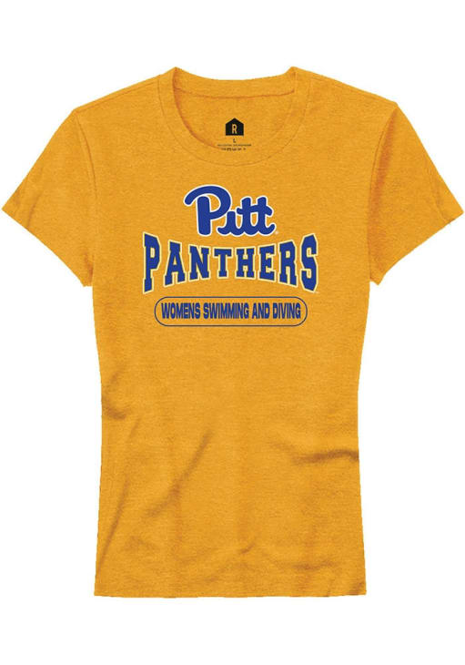 Display your team spirit with this remarkable Pitt Panthers Gold Womens Swimming and Diving Short Sleeve T-Shirt! The Panthers Short Sleeve Tee showcases a digitally printed graphic that truly sets it apart. Stand out from the crowd and proudly declare your allegiance to the Panthers with this exceptional Gold Panthers T-Shirt. Go Panthers!