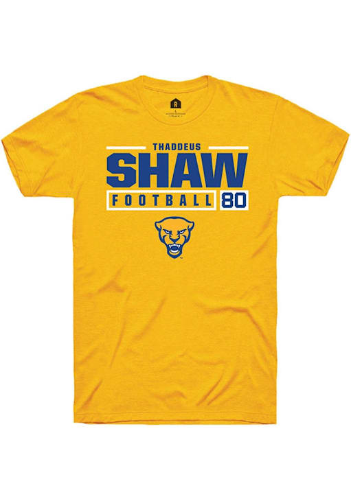 Thaddeus Shaw Gold Pitt Panthers NIL Stacked Box Short Sleeve T Shirt