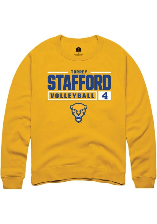 Torrey Stafford Rally Mens Gold Pitt Panthers NIL Stacked Box Crew Sweatshirt