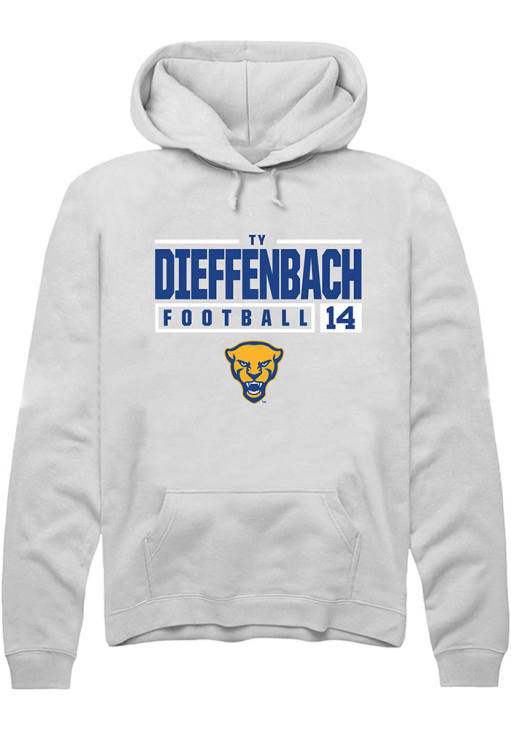 Ty Dieffenbach Rally Mens White Pitt Panthers NIL Stacked Box Hooded Sweatshirt