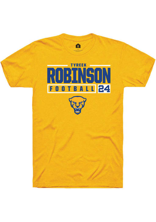 Tyreek Robinson Gold Pitt Panthers NIL Stacked Box Short Sleeve T Shirt