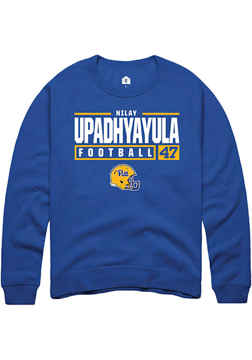 Nilay Upadhyayula Rally Mens Blue Pitt Panthers NIL Stacked Box Crew Sweatshirt