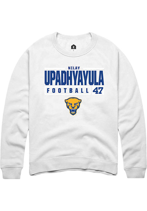 Nilay Upadhyayula Rally Mens White Pitt Panthers NIL Stacked Box Crew Sweatshirt