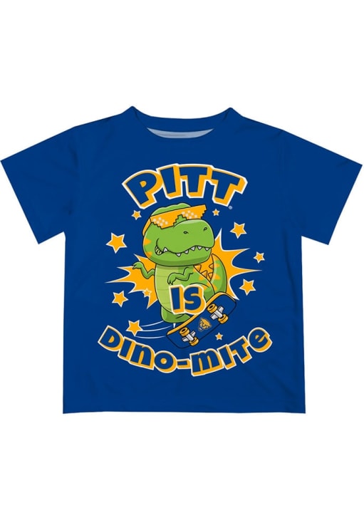 Product Details Product Details Moisture wicking breathable soft natural feel knit fabric.Lightweight fabric for easy comfortSublimated graphics and colorsCrewneck overstitched collarDouble needle cover stitch finished hemlines100% POLYESTER Officially Licensed Every future Pitt Panthers fan need a Blue Infant Short Sleeve Tee. This Dino-Mite T-Shirt features a rad, skateboarding dinosaur.
