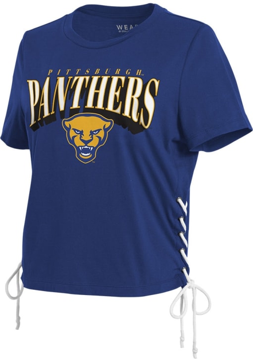Display your team spirit with this remarkable Pitt Panthers Blue Lace-up Short Sleeve T-Shirt! The Panthers Short Sleeve Tee showcases a Screenprint team name and logo on center chest that truly sets it apart. Stand out from the crowd and proudly declare your allegiance to the Panthers with this exceptional Blue Panthers T-Shirt. Go Panthers!