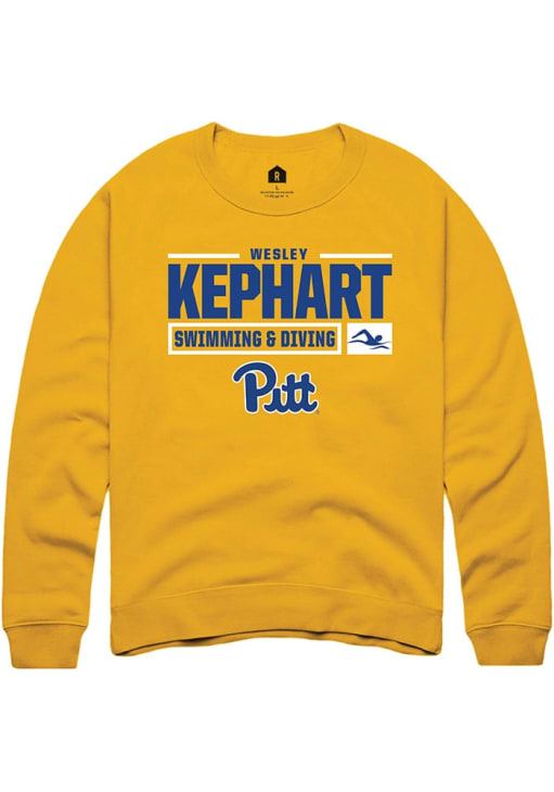 Wesley Kephart Rally Mens Gold Pitt Panthers NIL Stacked Box Crew Sweatshirt