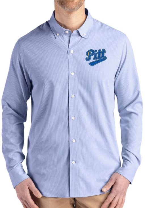 Show your Panthers spirit show in the office with this Pitt Panthers Dress Shirt! Embrace your team spirit and showcase it proudly in this Mens Blue Vault Epic Confidence Pinstripe Long Sleeve Long Sleeve Button Down Shirt. This Long Sleeve Dress Shirt features a team logo.