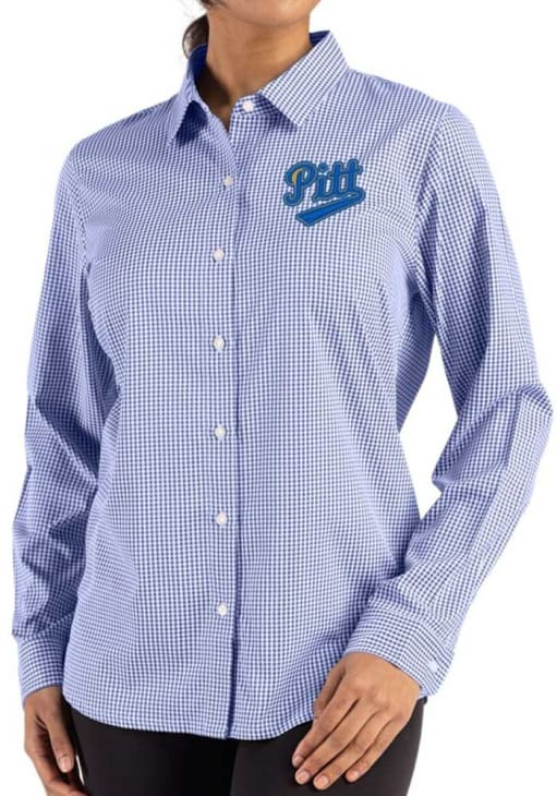 Show your Panthers spirit show in the office with this Pitt Panthers Dress Shirt! Embrace your team spirit and showcase it proudly in this Womens Blue Vault Epic Confidence Gingham Long Sleeve Long Sleeve Button Down Shirt. This Long Sleeve Dress Shirt features a team logo.