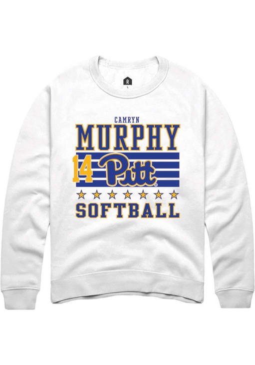 Camryn Murphy Rally Mens White Pitt Panthers NIL Striped Crew Sweatshirt