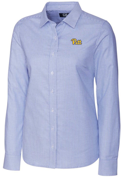 Show your Panthers spirit show in the office with this Pitt Panthers Dress Shirt! Embrace your team spirit and showcase it proudly in this Womens Blue Stretch Oxford Stripe Long Sleeve Long Sleeve Button Down Shirt. This Long Sleeve Dress Shirt features a high quality Easy Care Stretch fabric.