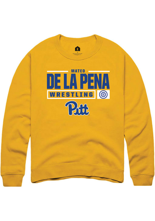 Mateo de la Pena Rally Mens Gold Pitt Panthers NIL Stacked Box Crew Sweatshirt