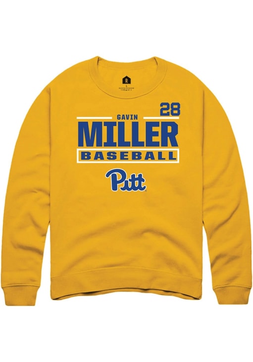 Gavin Miller Rally Mens Gold Pitt Panthers NIL Stacked Box Crew Sweatshirt