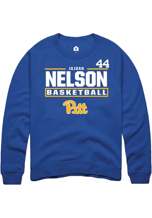 Jajuan Nelson Rally Mens Blue Pitt Panthers NIL Stacked Box Crew Sweatshirt