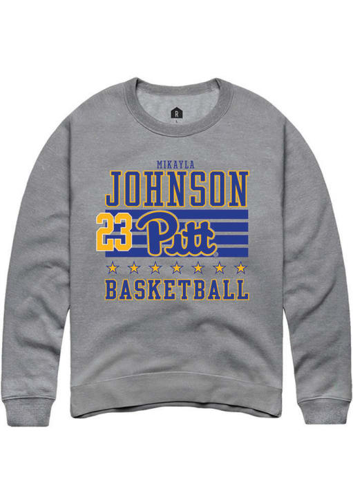 Mikayla Johnson Rally Mens Grey Pitt Panthers NIL Striped Crew Sweatshirt