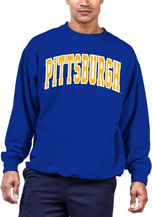 Mens Blue Pitt Panthers Arch Twill Big and Tall Crew Sweatshirt